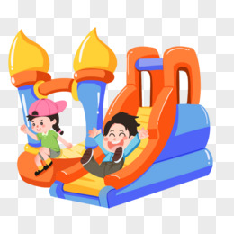 六一儿童节卡通拿气球快乐星星气球欢乐牵手玩耍卡通滑滑梯儿童乐园