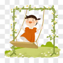 卡通儿童荡秋千人物场景插画