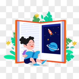 卡通手绘小女孩学习知识看书免抠素材
