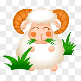 卡通儿童插画小羊吃草素材