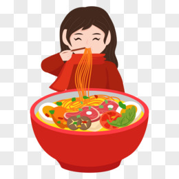 卡通手绘小女孩吃面条素材
