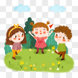 手绘卡通小朋友玩斗鸡游戏插画场景免抠元素