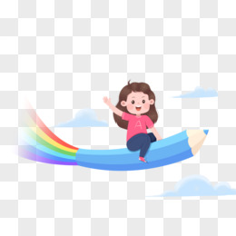 卡通手绘骑铅笔的卡通形象免抠元素