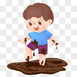 卡通手绘玩泥巴的小孩子元素