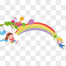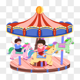 手绘孩子们在游乐场坐旋转木马免抠元素