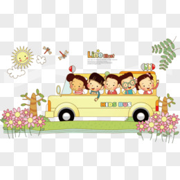 手绘卡通幼儿园一起排排坐免抠元素