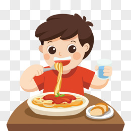 卡通手绘小男孩吃面素材