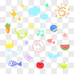 手绘蜡笔风卡通可爱手账贴纸免抠素材