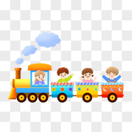 手绘小朋友们开心的坐小火车免抠元素
