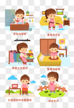 一组卡通手绘中小学生独立劳动课程之清洁与卫生元素
