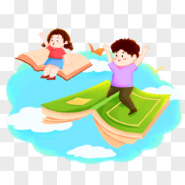 手绘两个小朋友在草地上比赛跳绳免抠元素