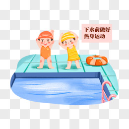 一组手绘儿童防溺水安全教育插画套图之下水前做好热身运动免抠元素