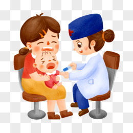 卡通手绘插画风护士给宝宝体检打疫苗元素