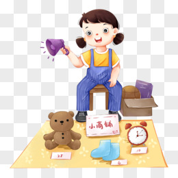 手绘卡通黄衣小男孩开心的跳起来免抠元素