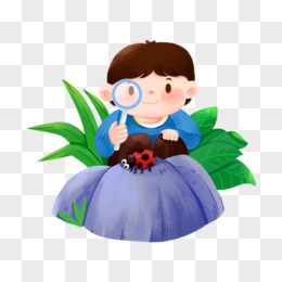 手绘插画风小孩拿着放大镜观察昆虫素材