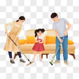 手绘插画风一家人一起打扫卫生场景元素