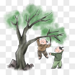 手绘水墨古代小孩爬树免抠元素
