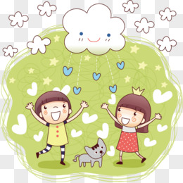 手绘卡通小朋友玩老鹰抓小鸡素材
