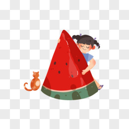 手绘插画儿童在树下乘凉吃西瓜场景元素