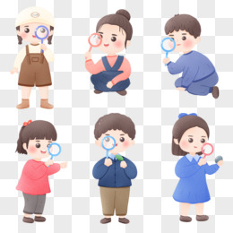 手绘插画风女孩拿着放大镜观察昆虫元素