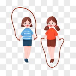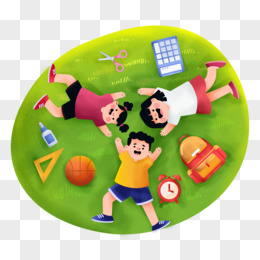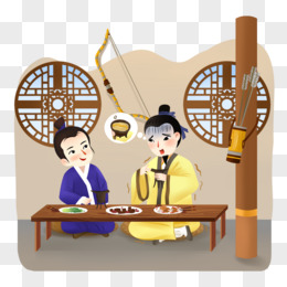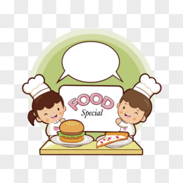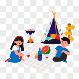 卡通手绘男孩女孩坐在桌布上免抠元素