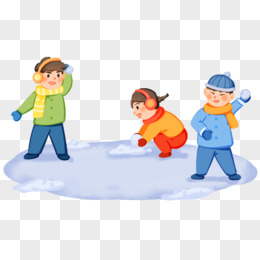手绘卡通小伙伴们一起打雪仗免抠素材