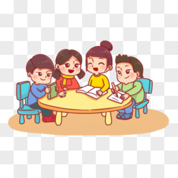 手绘寒假培训班小组活动场景素材