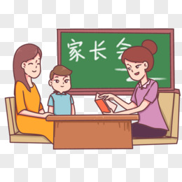 手绘教室内老师家长座谈开家长会场景素材