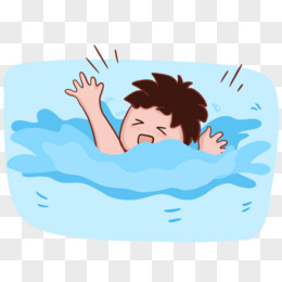 手绘儿童溺水呼救场景插画素材