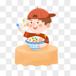 手绘卡通小朋友吃饭香喷喷免抠元素