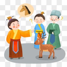 手绘卡通指鹿为马插画免抠元素