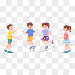 手绘多人跳绳场景插画元素
