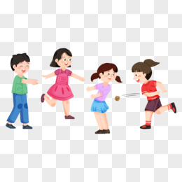 手绘卡通儿童拔河免抠素材