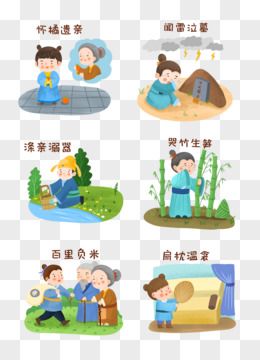 手绘卡通二十四孝儿童插画风合集免抠元素