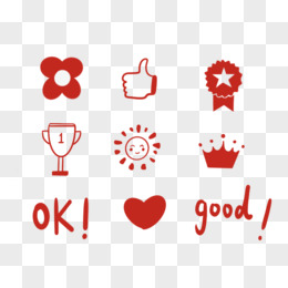 一组扁平风红色学生表扬贴纸合集之赞素材