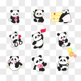 一组可爱熊猫庆祝国庆贴纸合集