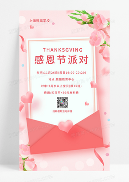 粉色简约感恩节儿童派对幼儿园感恩节手机文案海报