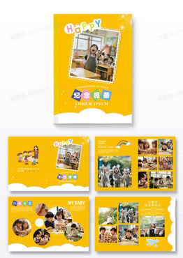 黄色卡通童心风儿童婴儿画册影集儿童相册
