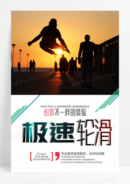 线条拼接极速轮滑宣传海报