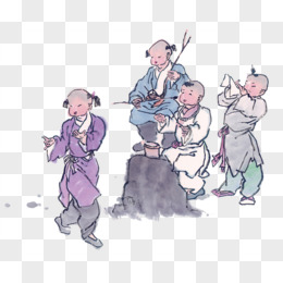 手绘古风小童开心鼓掌蹦跳元素