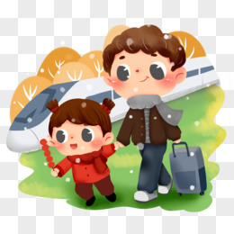 大年三十春运回家牵小孩回家过年