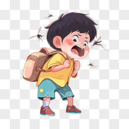 儿童惊恐的看着周边的蚊子元素