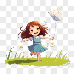卡通放风筝小女孩玩耍娱乐元素