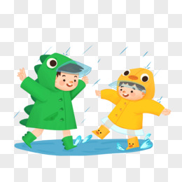 手绘小孩踩水玩耍场景素材