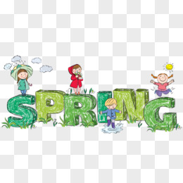 春天出游的卡通小孩