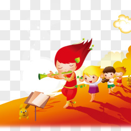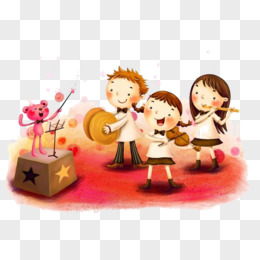 手绘卡通儿童唱儿歌的场景插画免抠元素
