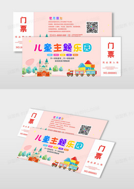 蓝色卡通儿童主题乐园游乐场代金券儿童乐园门票入场券