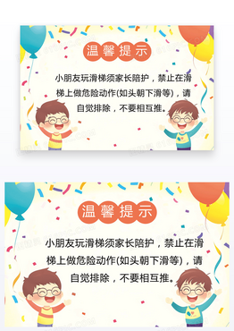 卡通风儿童提示温馨提示儿童玩耍注意安全