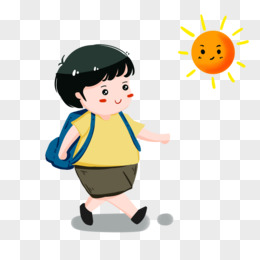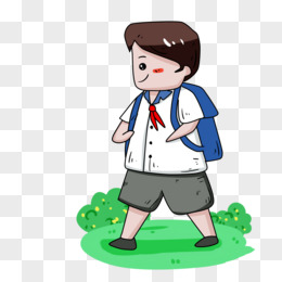 在上学路上的背着书包和小伙伴打招呼的小男孩