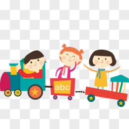 手绘孩子们在游乐场坐旋转木马免抠元素